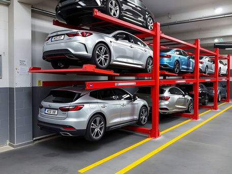 mechanical devices that use platforms and hydraulic or electric lifts to stack two or more vehicles vertically within the footprint of a single traditional parking space.
